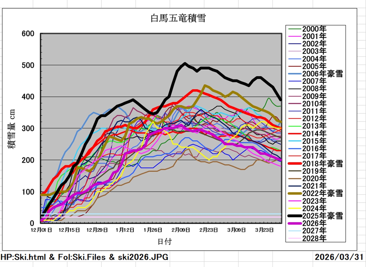2020年今年の積雪は2018年の豪雪に比べて2mも少なく、新型コロナのこともあり3月はゲレンデ状態が悪そうなので中止にしました。 このスキー場の大好きな最長コース標高差950m、滑走距離5000mの「アルプス平のトップからコスモフォーの乗り場まで」を寄る年波で「ノンストップで一気」に滑れなくなってしまいました。 お年寄りは引退をする時期が到来したようです。 2020年2月が五竜スキー場での最後の写真になってしまうようです!! 中央線特急あずさは最新型のE353系車両になり全席指定席になりましたので、今までのように気楽に自由席に乗車することが出来なくなりました。 「神城駅」で指定券を購入したら「手書き」の指定券で、最新型E353系中央線特急あずさ26号最後の乗車の良い記念になりました。 | |||